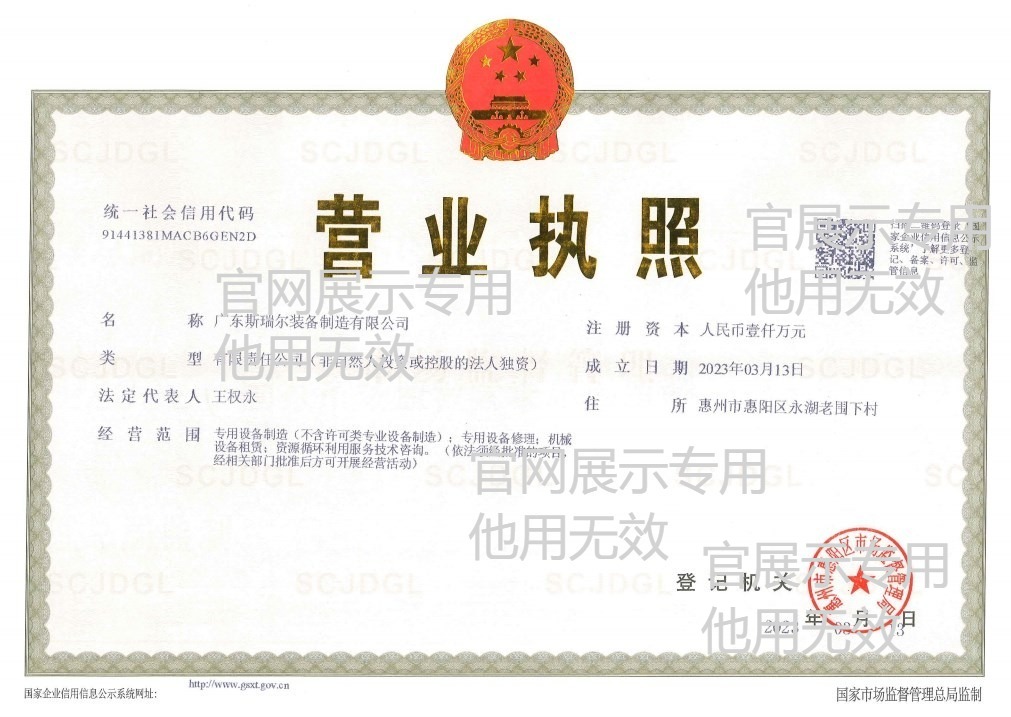 广东斯瑞尔装备制造公司营业执照