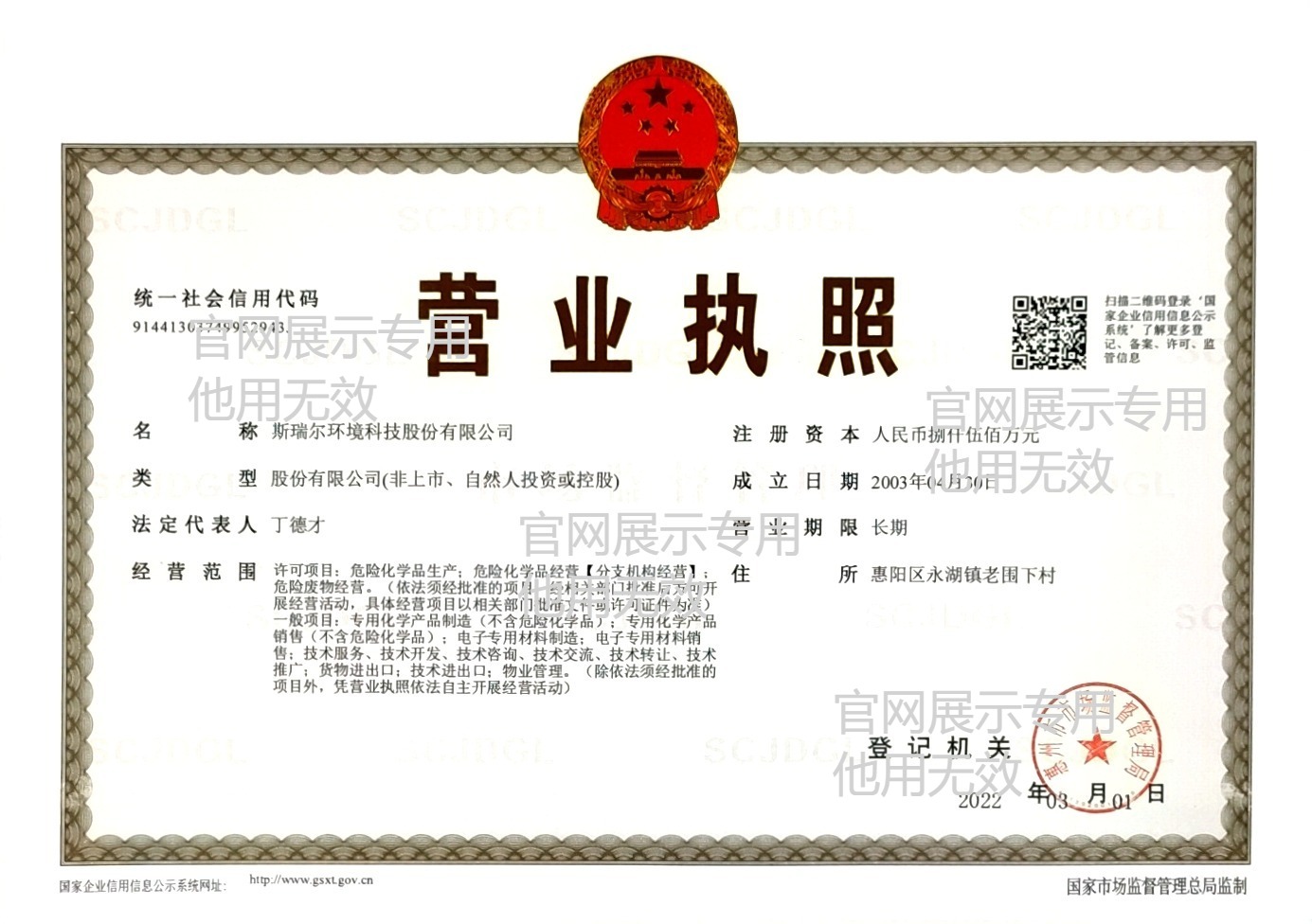 斯瑞尔环境科技股份有限公司营业执照
