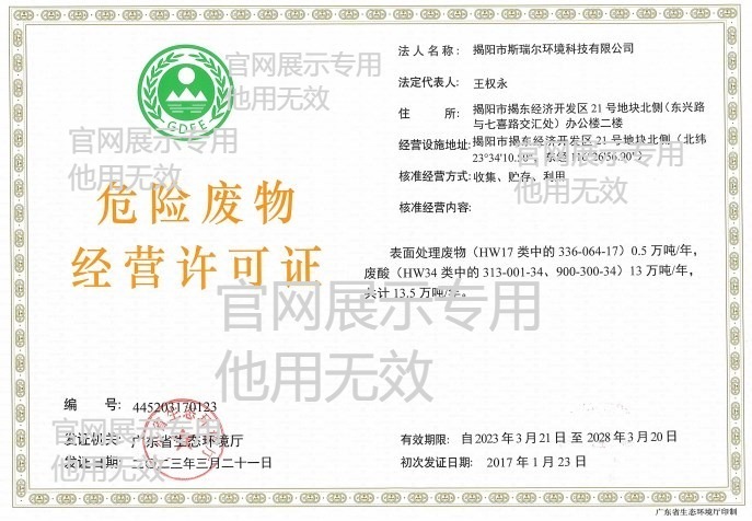 揭阳斯瑞尔危废经营许可证
