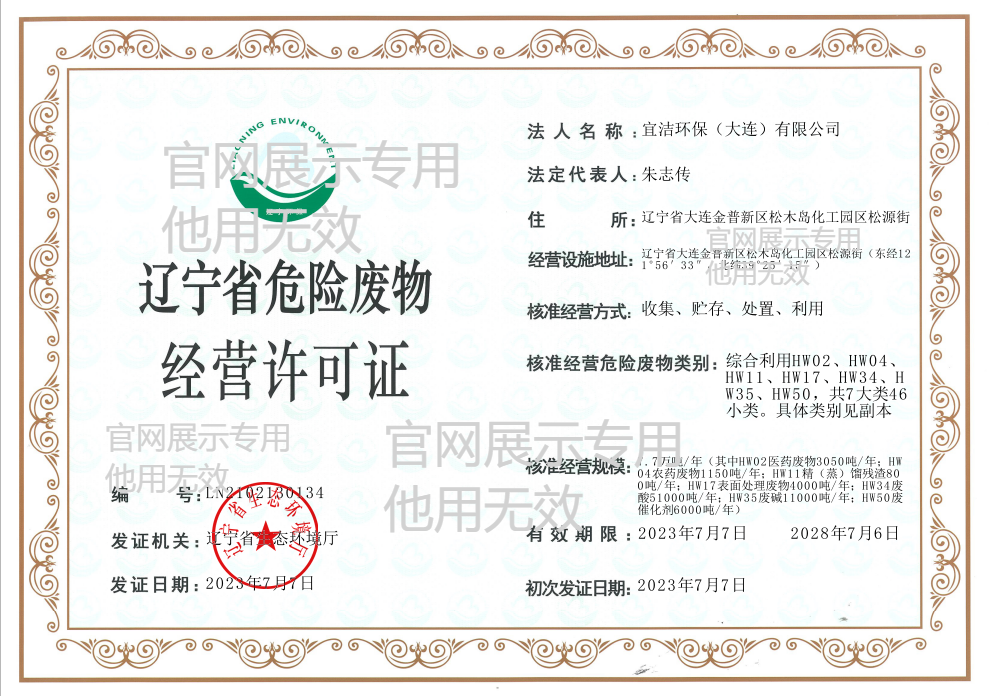 宜洁环保(大连)危废经营许可证