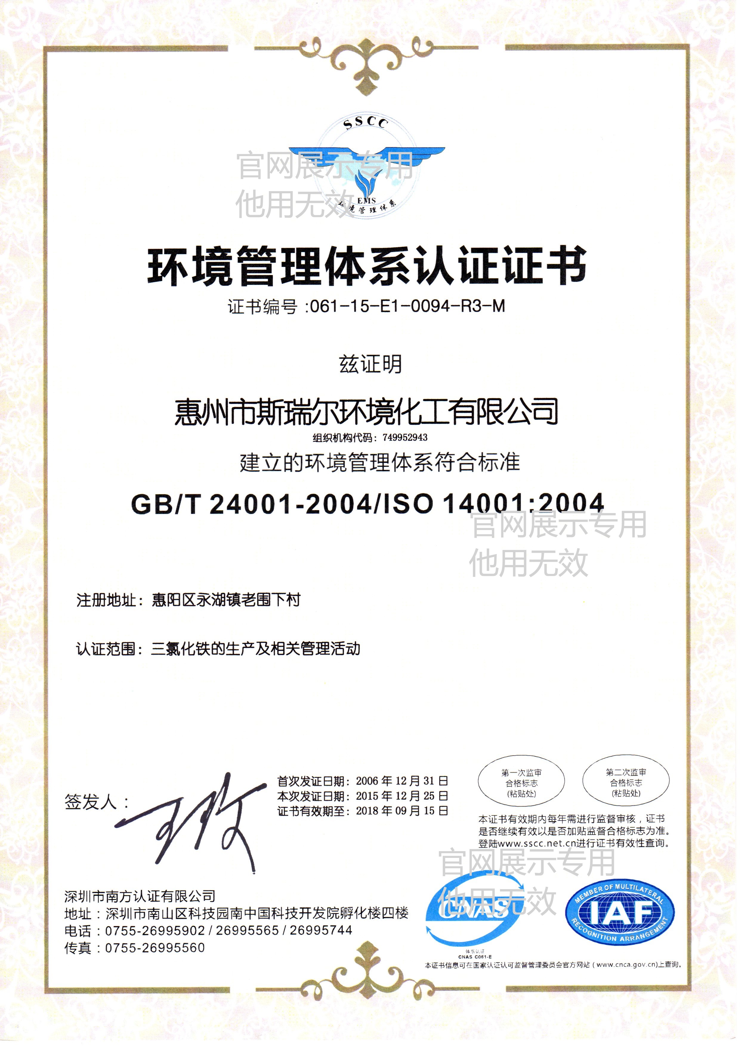 ISO14001、ISO9001质量管量体系证书